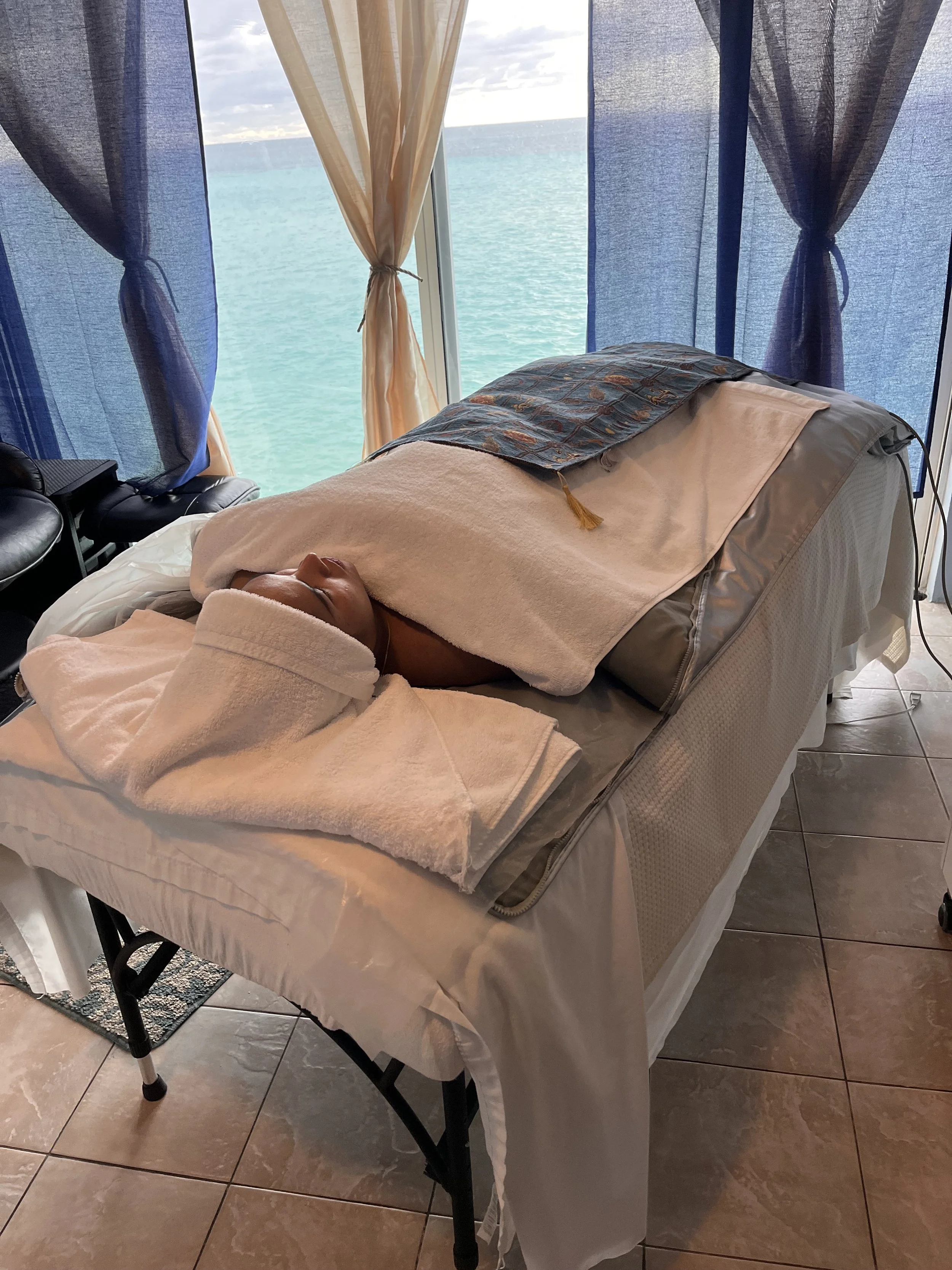 Our Infrared Sauna Detox Therapy offers a rejuvenating experience where the heated sauna bed is designed to promote sweating, aiding in the elimination of toxins and burning fat. This therapy not only enhances blood circulation but also helps in relieving fatigue, leaving you feeling refreshed and revitalized. Indulge in this detoxifying treatment to support your overall well-being and promote a sense of relaxation.
